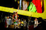 驚愕したのがFUJIが恒例のあの人に扮して「出航だー!!」と声を挙げ、なんとイカダに見立てたステージの一部が会場中央へ移動し、回転もしながらそこで披露した「オドルヨル」。その後のMCで「いちばん遠い人の近くへ行きたかった」とKENTAは語っていたが、予想の遥か上をいく、WANIMAのアイデアとサービス精神の賜物に違いない。