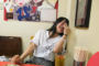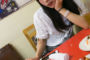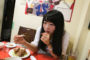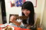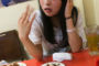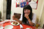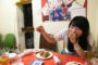 撮影用にお皿を持っただけでハイテンションのアオちゃん。超ノリノリ(?)で食レポに挑みます。