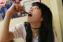 勢いよくヘビにかぶりついたアオちゃん。あまりの衝撃に気持ちと身体のコントロールができないのか、笑ったり震えたり呆然としたりと少々壊れ気味。ギャンパレのステージ上では見たことのないリアクションを次々に見せてくれます。少し落ち着いた頃合いを見計らってヘビの感想を聞くと…