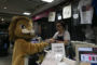 「よろしくお願いします」と深々と頭を下げてチラシを渡すみずほライオン。最後にスタッフさんと記念撮影をしてタワーレコードを後にしました。