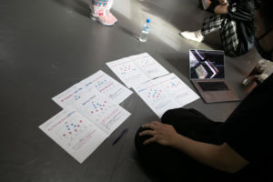 そして14時を少し回った頃にいよいよ練習開始。最初はNUANCEプロデューサーのフジサキPが指揮を取る”fujisaki set”から始めることとなった。練習が始まって改めて気づいたのだが、本番でのセトリと曲の繋ぎの構成と演出は基本的に各々のプロデューサーが考案することになる。