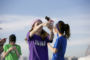 そして8月3日のSKY STAGEは日が傾き始めた夕刻のライブ。15分の持ち時間にもかかわらずロングミックスのイントロでじらしにじらしてからの登場。ミックスからの流れで「海辺のサティ」を披露すると曲中に一旦ステージ袖へ戻ったEspecia。空になったステージを見つめる戸惑い気味のファンの前に再びEspeciaが戻ってきたメンバーの手にはスマホとタブレットが。