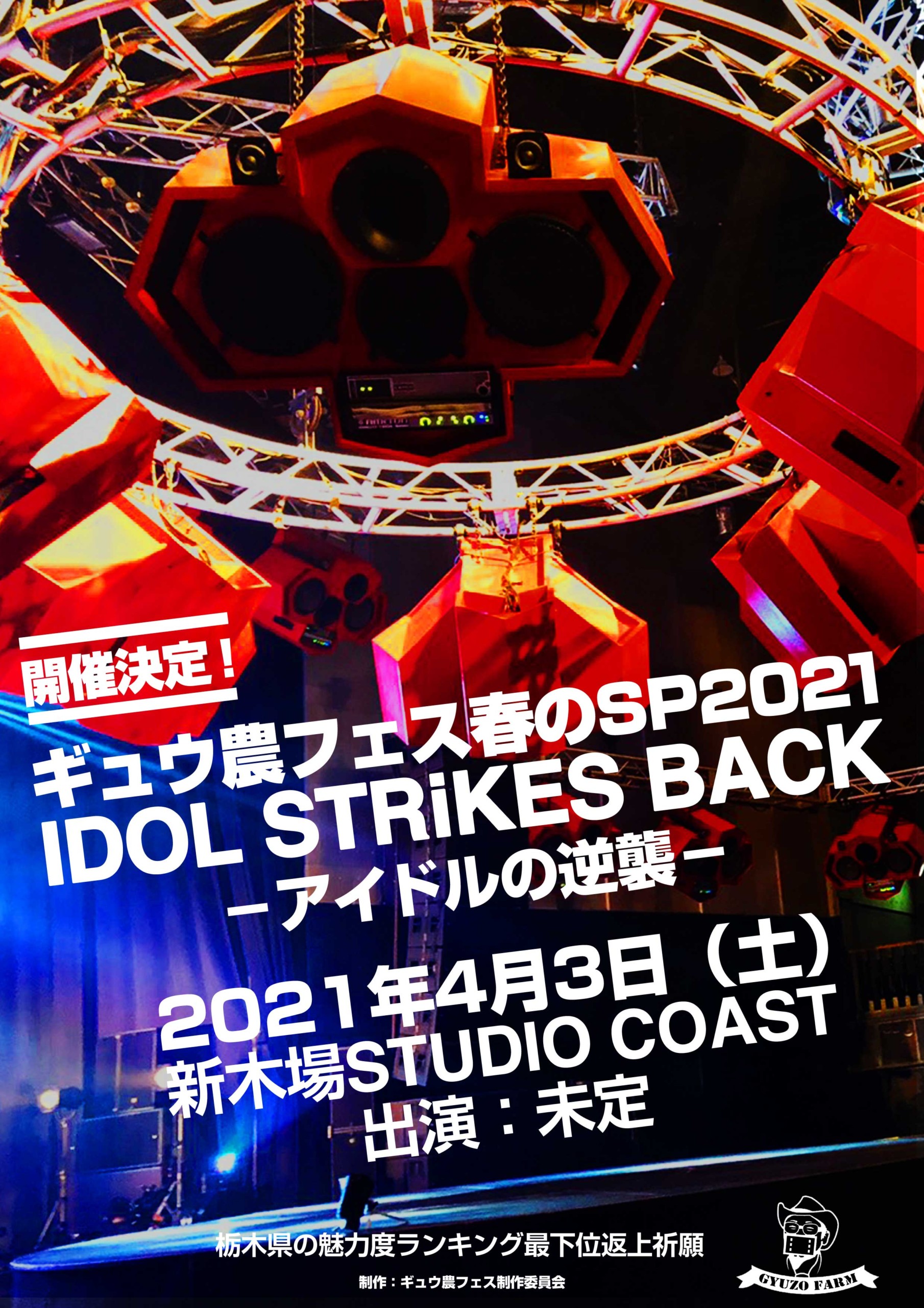 電撃ネットワークのギュウゾウが主宰する『ギュウ農フェス』が、2020年10月18日に開催された「ギュウ農フェス 5th ANNIVERSARY 秋のSP2020」で、来春4月3日に新木場スタジオコーストにて大規模アイドルイベントを開催することを発表した。