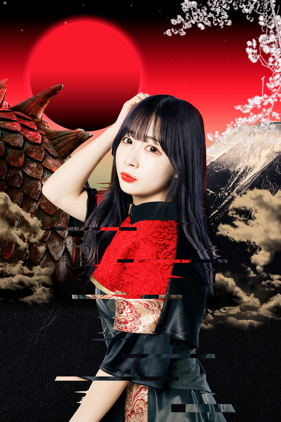 新ビジュアルのテーマは“和”ד5G”。伝統的な和の様式と最先端の技術を合わせた、まさにNEO JAPONISM(以下、ネオジャポ)の名の通りのものとなっている。赤と黒が目を惹く鮮烈なデザインは、外林健太(衣装/撮影)と品川捺未(グラフィック)が担当。