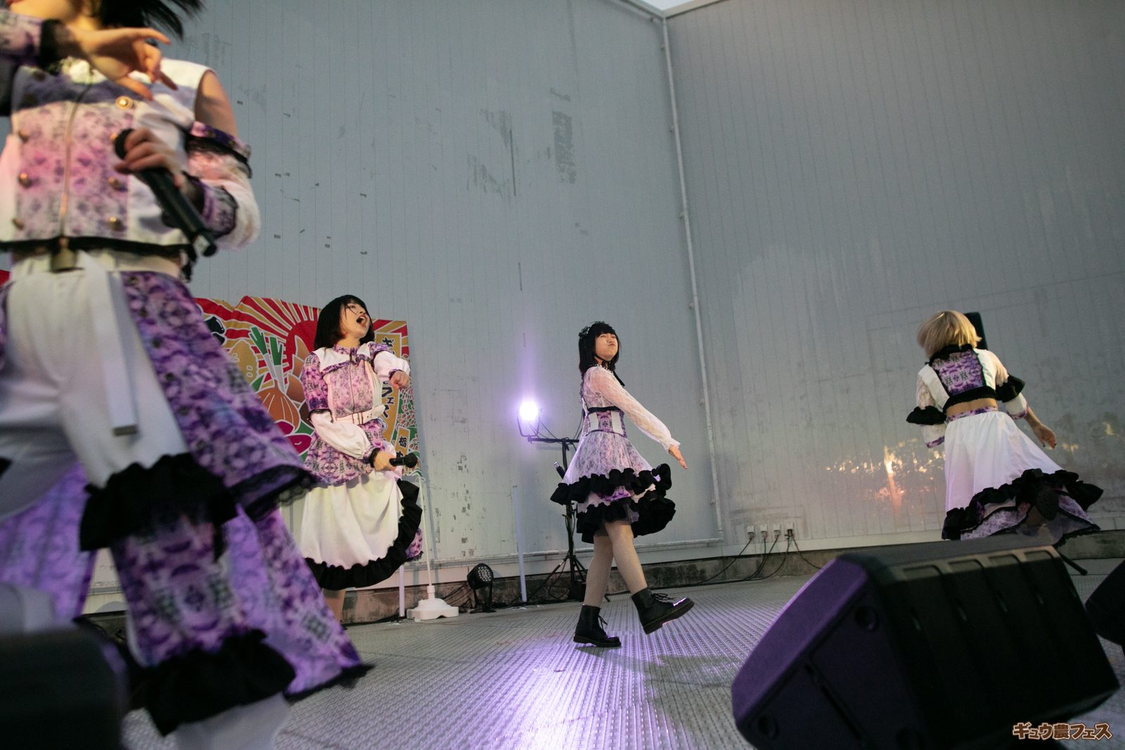 一方、プレイベントでの手垢のついてないフレッシュなパフォーマンスが”色んな意味で”ギュウ農フェス関係者たちの度肝を抜いた1/fキュレーションも野外ステージに登場。10分間のライブに持ち曲全てを詰め込んだ初々しいステージを披露しました。