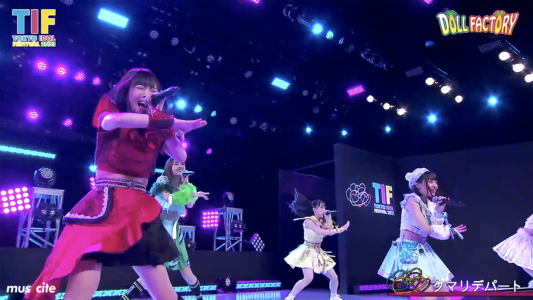 昨今のアイドルシーンで破竹の勢いを見せるクマリデパート。TIF2021もおなじみの「おいでよ!クマリデパート」で幕を開けると、「サクラになっちゃうよ!」「二十四時間四六時中」と持ち前の振り幅の大きい楽曲とともに全力のダンスと全力の笑顔で盛り上げ、最後はクマリデパートのアンセム楽曲「アンサー!!」で来場者と配信閲覧者と出会えた”奇跡”を高らかに歌ってライブを締めくくった。