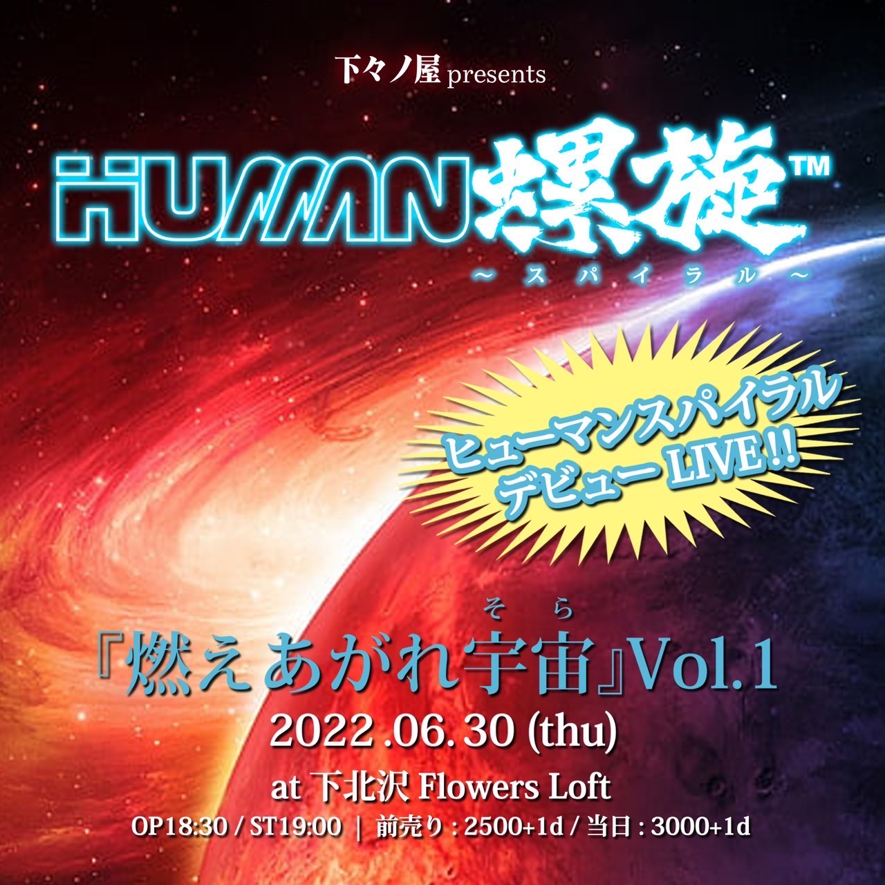 2022年6月7日、新アイドルグループ”Human 螺旋(読み:ヒューマンスパイラル)”が 2022年6月30日に下北沢Flowers Loftにて開催することを発表した。