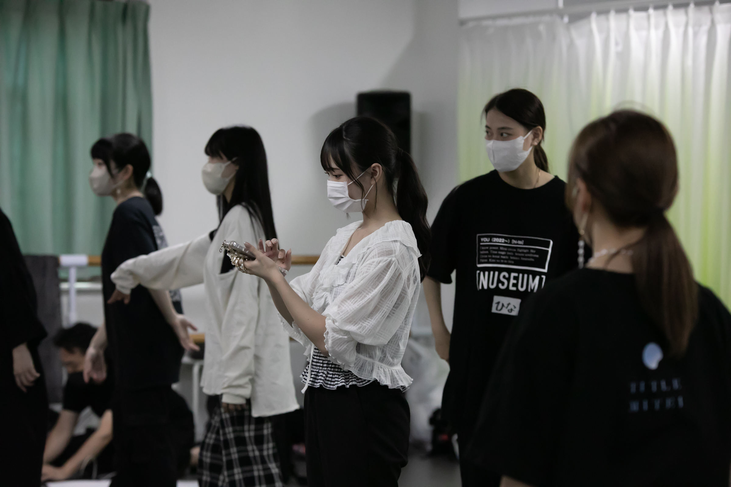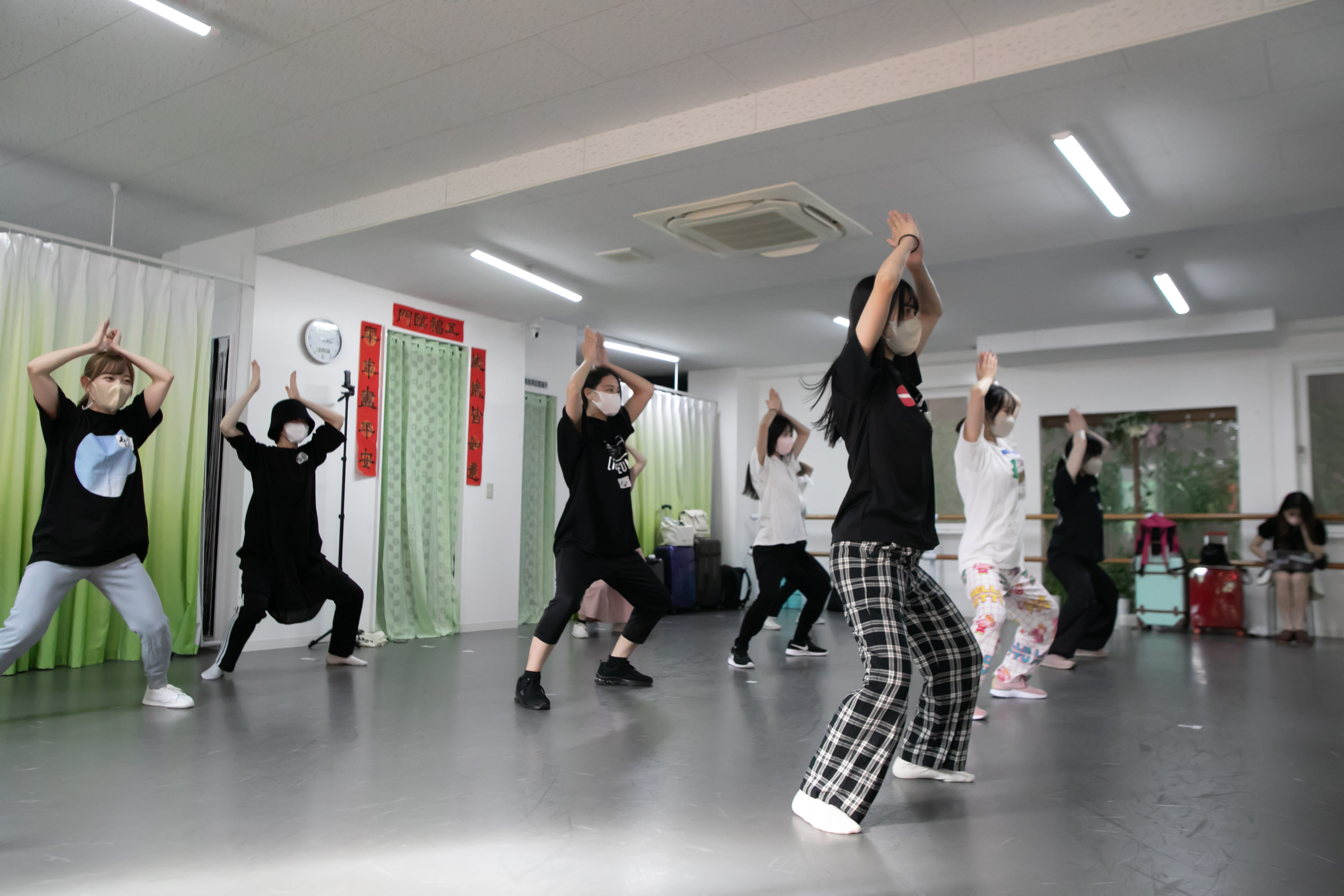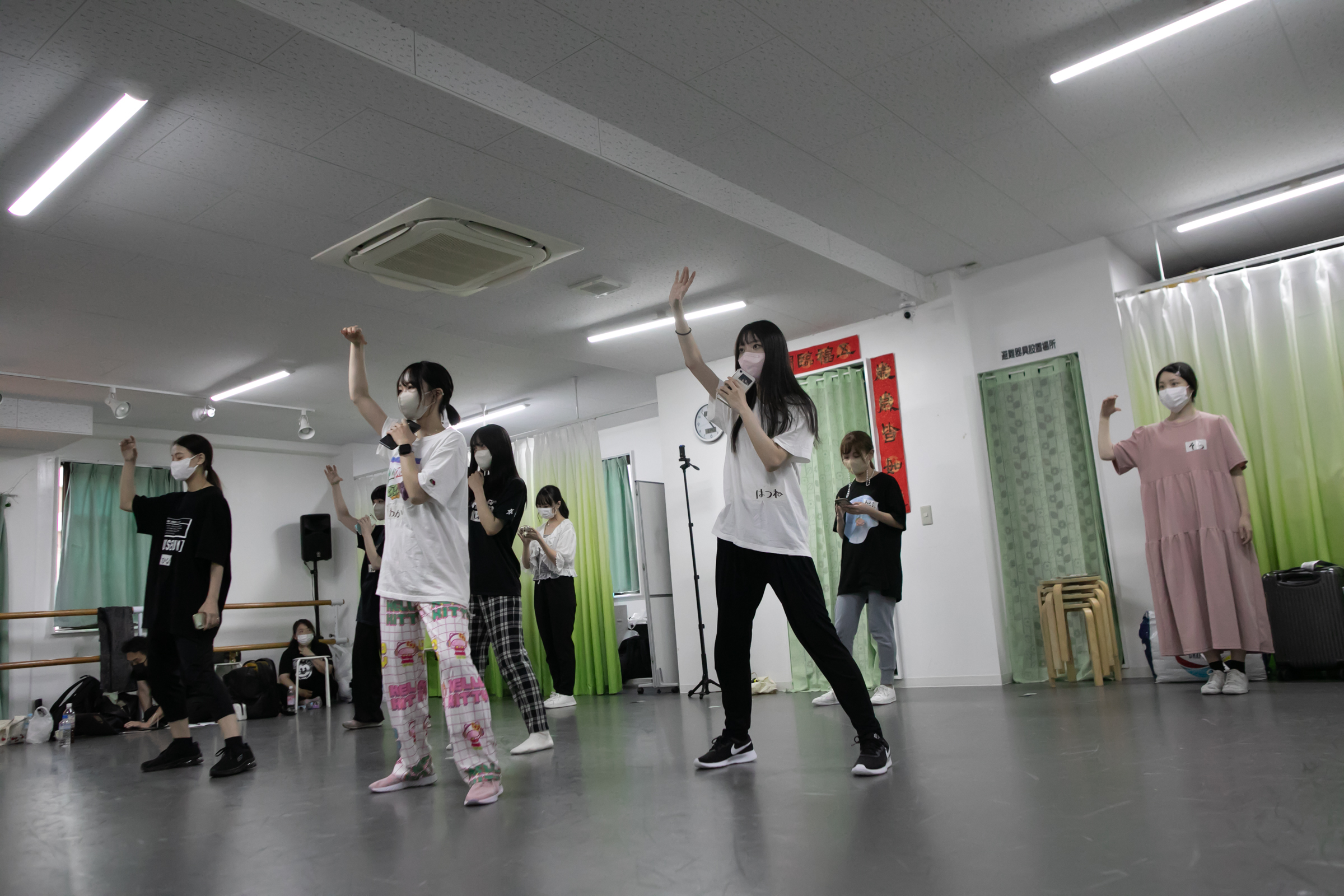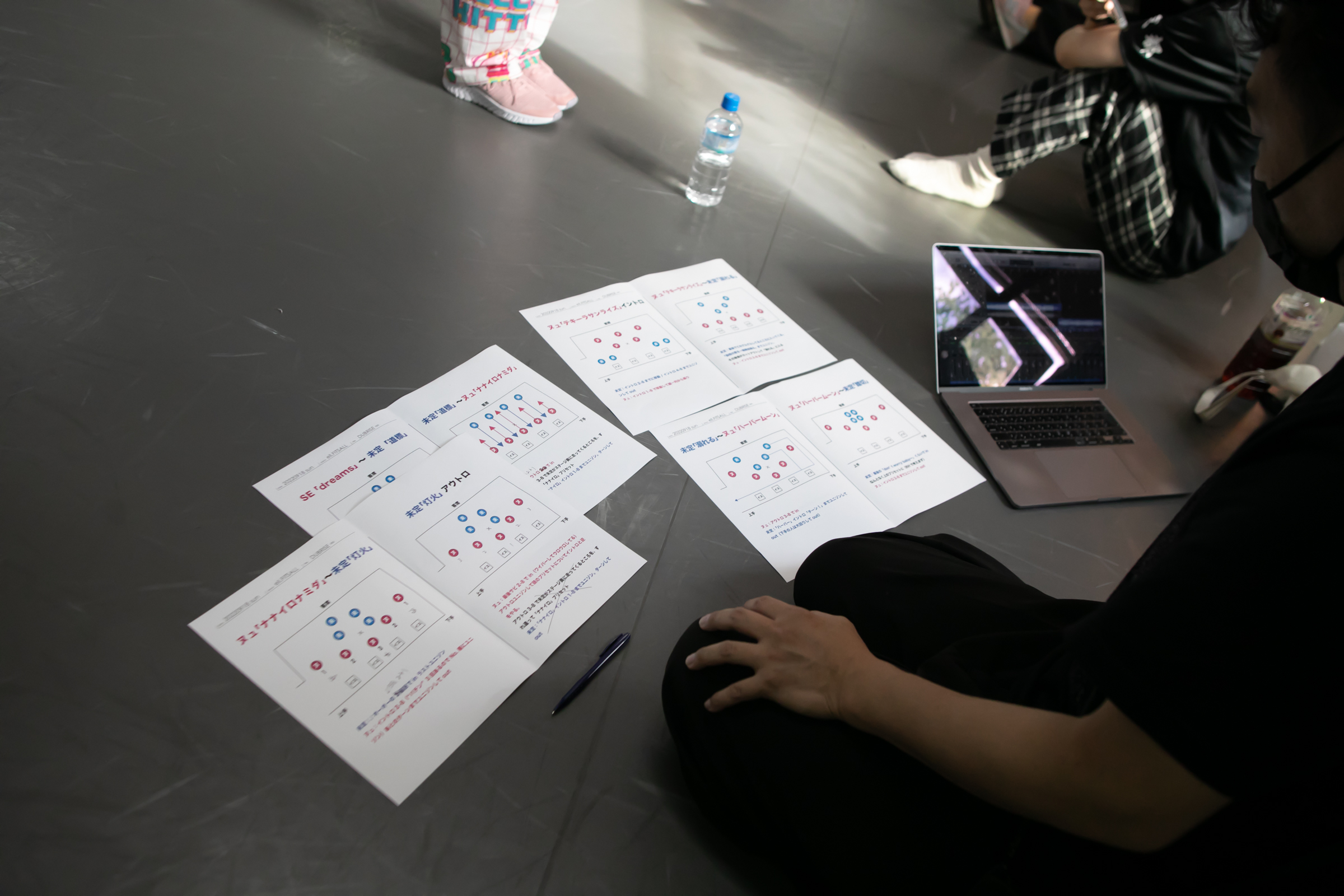 この練習、当然大変なのはDUBRISE初挑戦のタイトル未定の方で、慣れない移動や自分たちのグループでは決してやらない振りにぶち当たると「キャー!!(笑)」という驚きとも悲鳴ともつかない声が度々上がる。またPからの指示を漏らさぬよう練習中もメンバーたちはスマホが手放せない。ちょっとした合間にPからの指示や動きのポイントなどをメモ&撮影する姿が常に見受けられた。