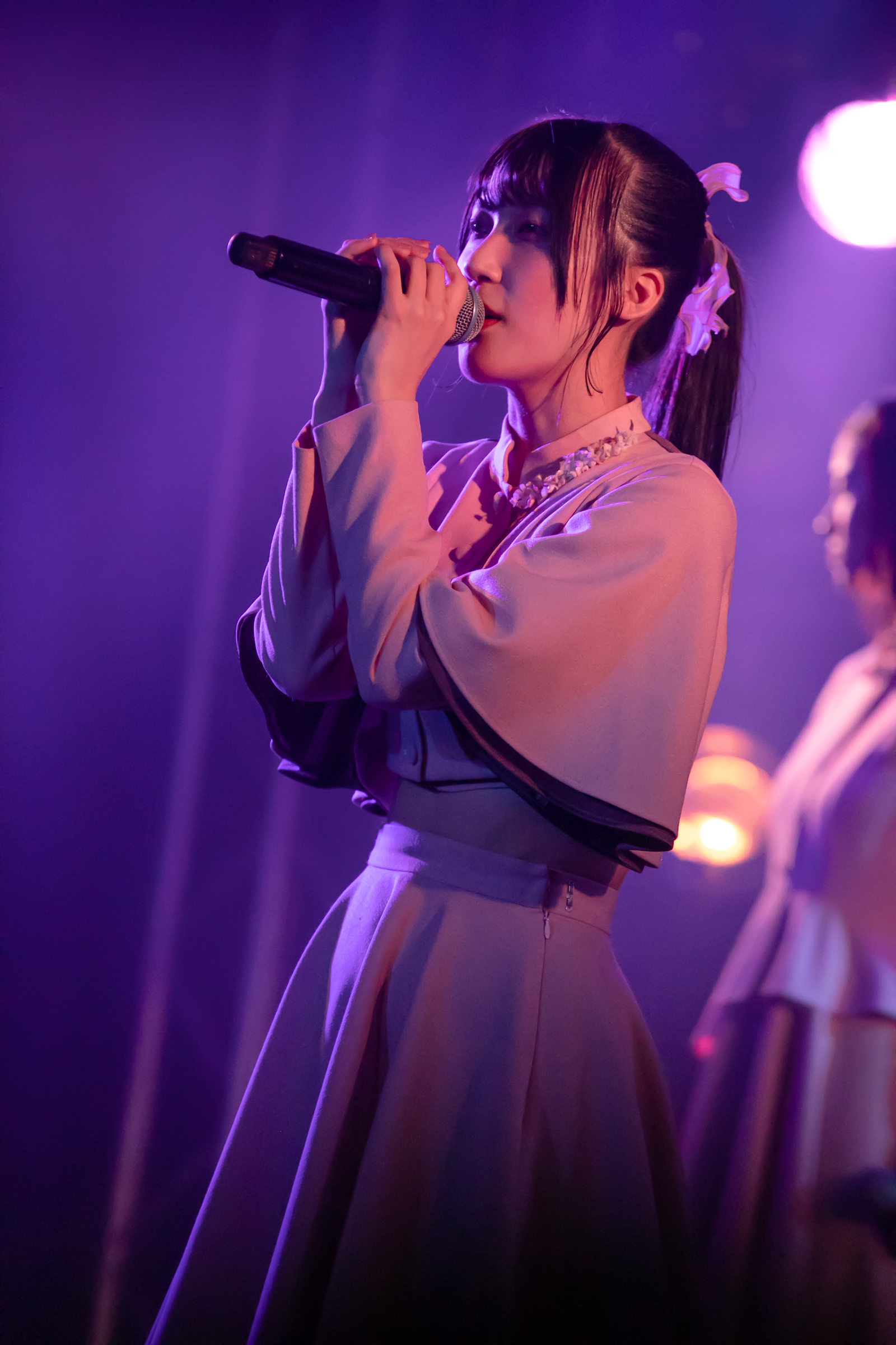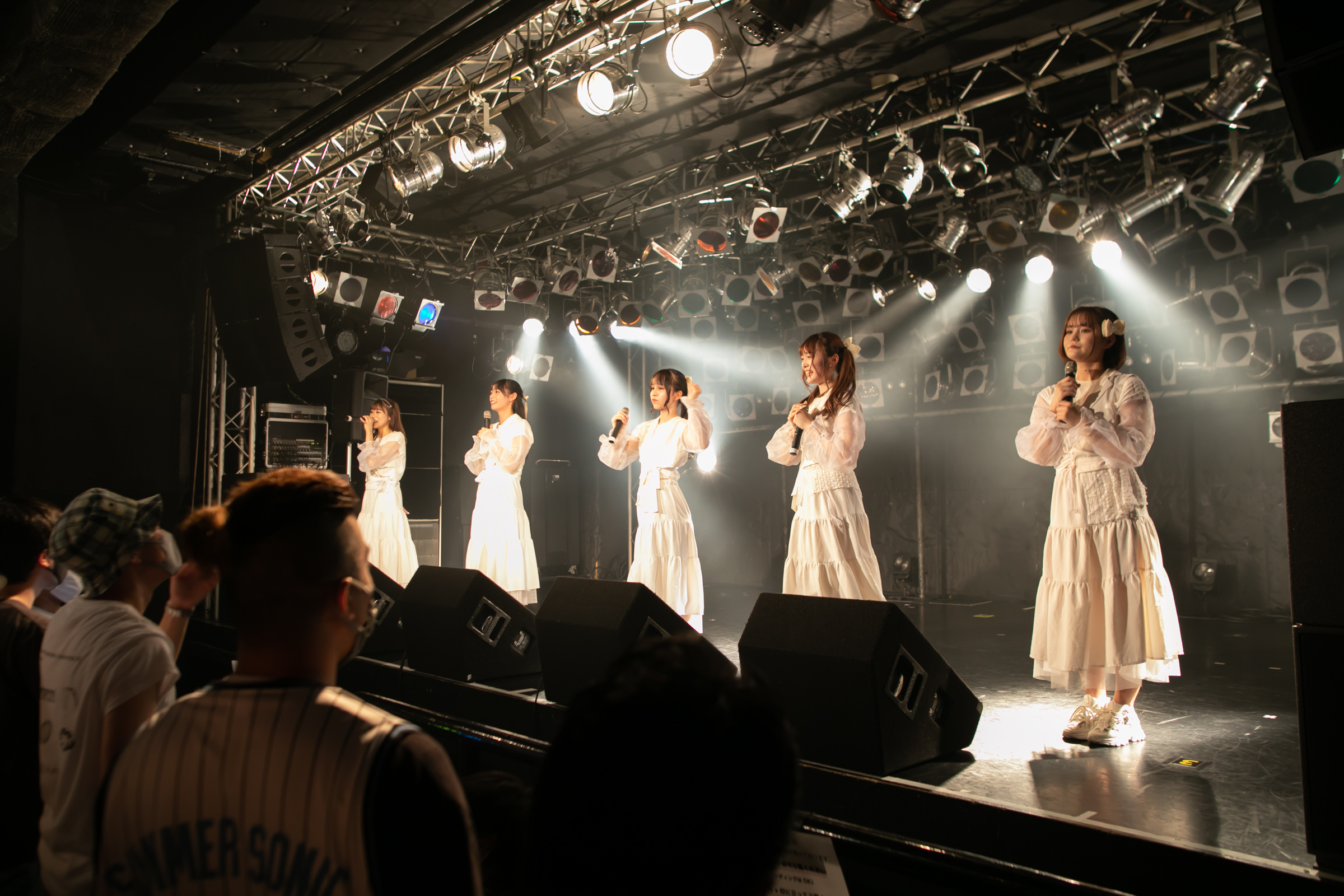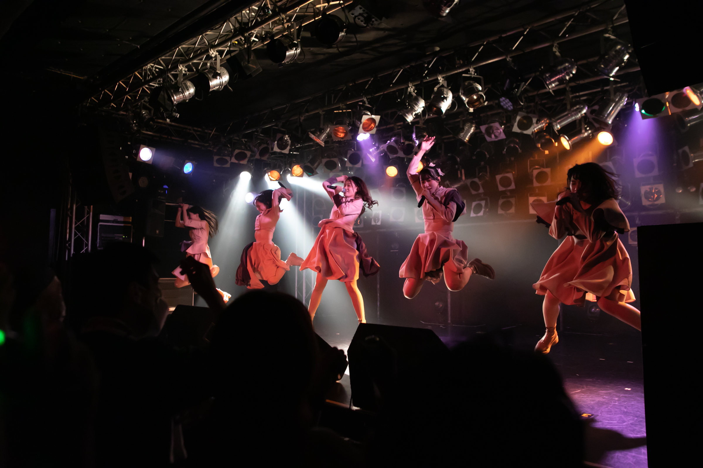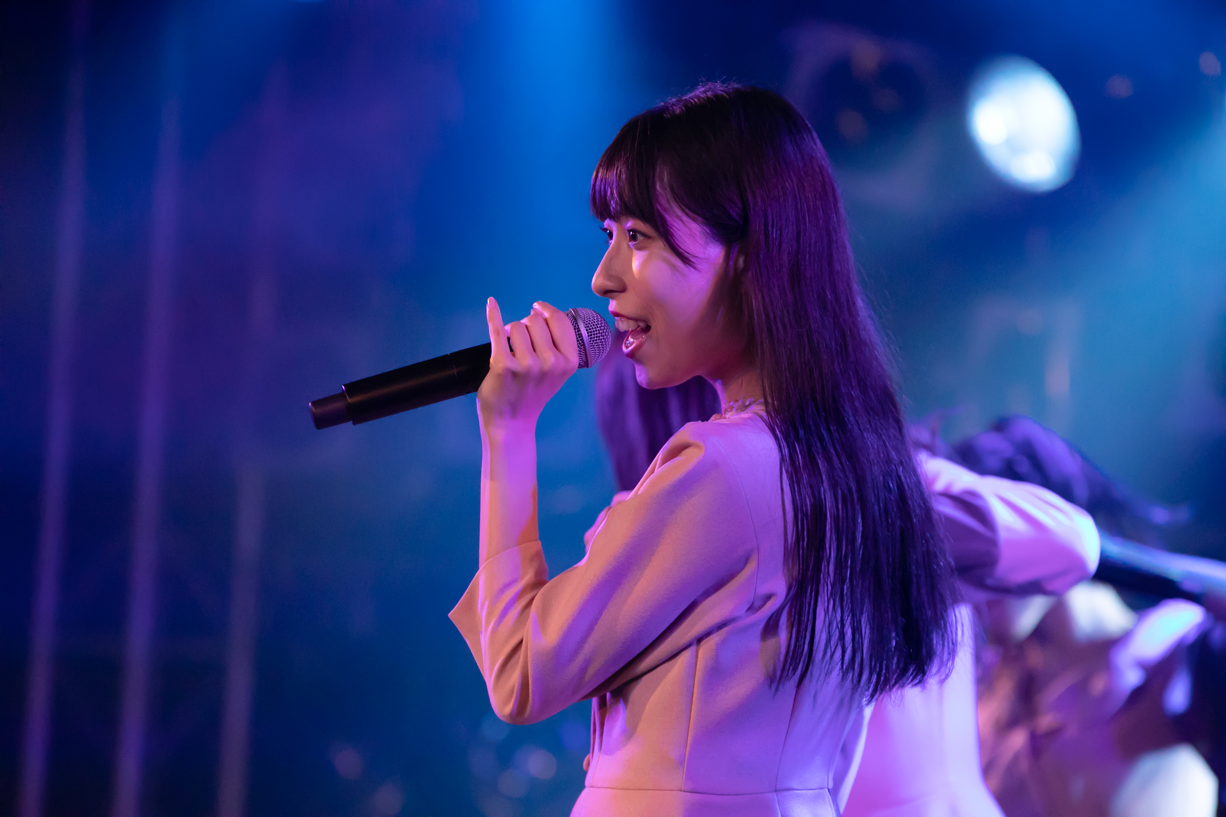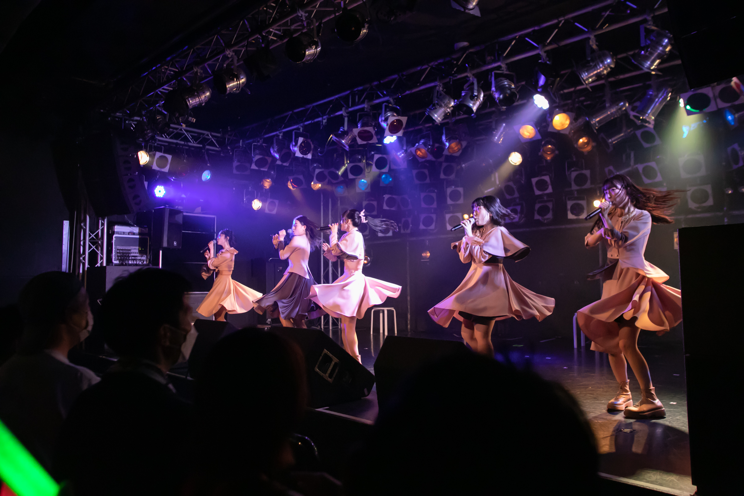 ライブはNUANCEの「under the moon」から始まりタイトル未定の「黎明」、そしてまたNUANCEの「ハルシオン」へと繋がっていく。その曲の間の僅かな時間にそれぞれのグループとその世界観が重なり、そしてまた離れていく唯一無二な時間。DUBRISEを初めて見たファンもこの空間が特別な何かであることに気づくのにそれほど時間はかからなかったのではないだろうか。その中でも特に印象的だったのが「鼓動」の最後の決めポーズ。優雅なダンスから一転した”決め”で終わりを迎えるこのアウトロをNUANCEとタイトル未定の9人バージョンのフォーメーションで組まれた。そしてその中央のポジションに立っていたのはNUANCEの蓮水恭美。現在のタイトル未定では見ることができなくなった幻の5人目のポジションは、事前の練習でタイトル未定の谷 乃愛が蓮水恭美へ丁寧に振り写しをしていたパートでもあり、本番でその決めが見事に決まった瞬間は心の拍手を贈りたいほどに美しい光景だった。
