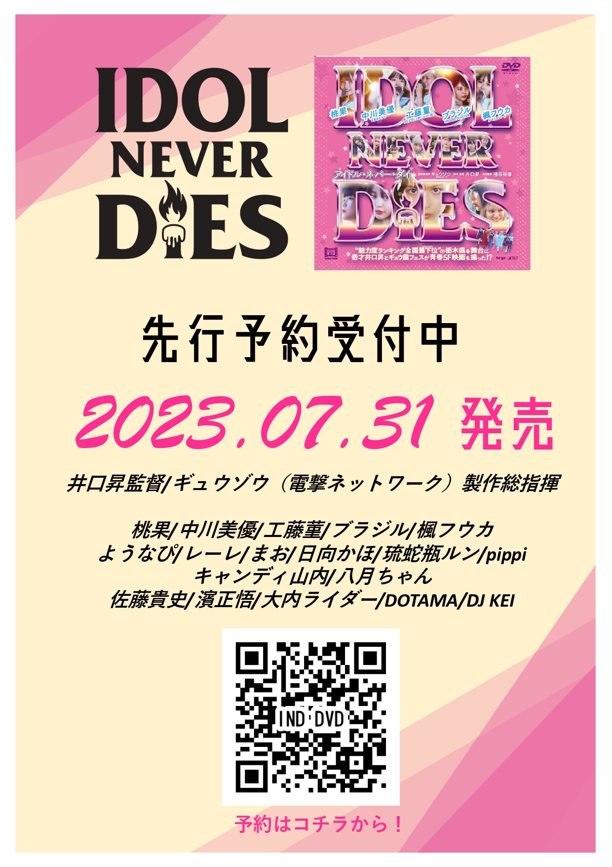 7月8日(土)映画『IDOL NEVER DiES』DVD予約販売受付。