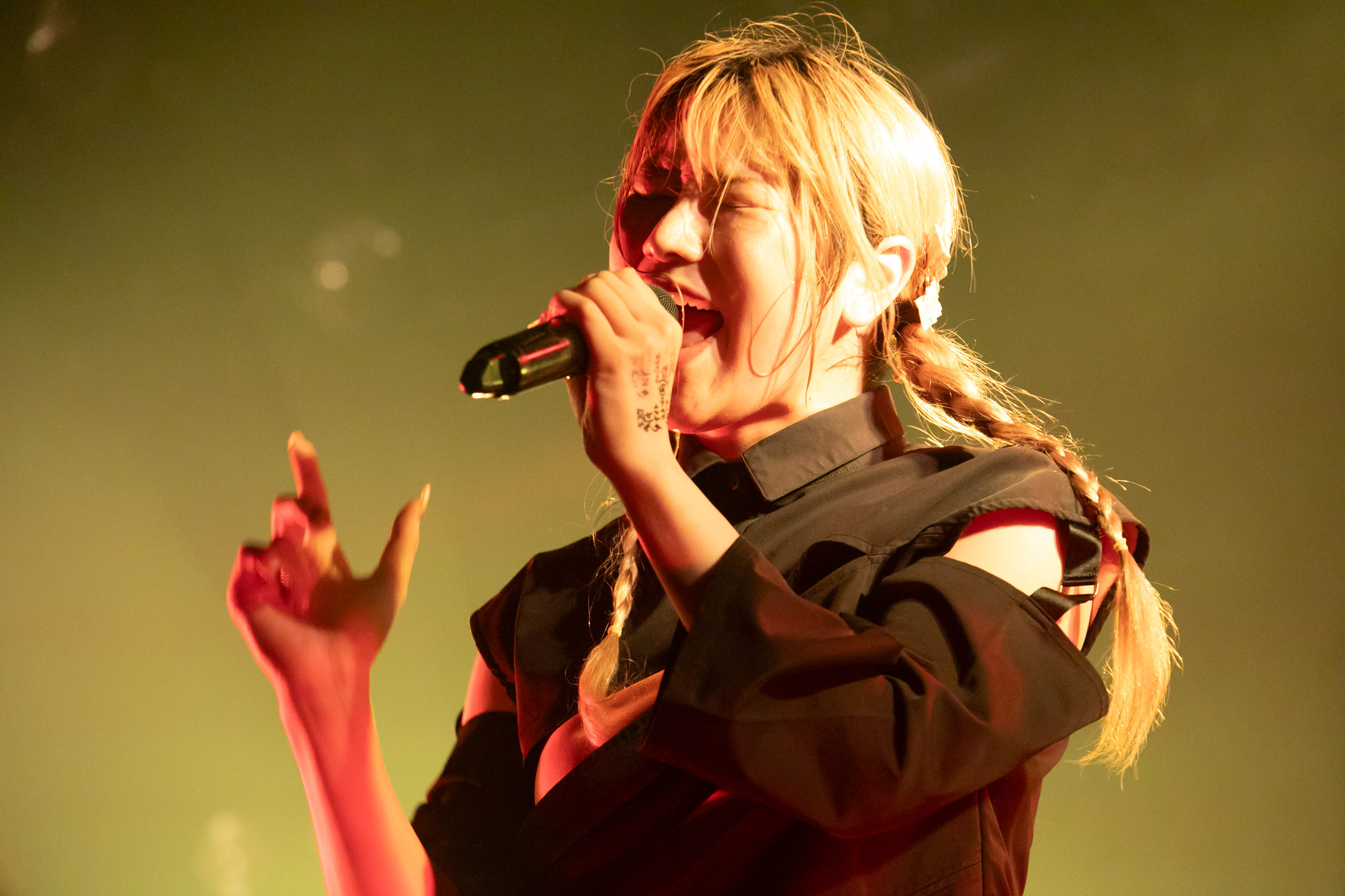 「Agitator」で振り絞り出すような声で「みんなの時間くれんの!?」「いい思い出にしよ!!」と過酷な現実を観客に突きつけるようなシャウトを放つと、一方の美月さんも自らの限界と戦いながら目の前にある歌とダンスに全精力を傾けている姿が見て取れました。
