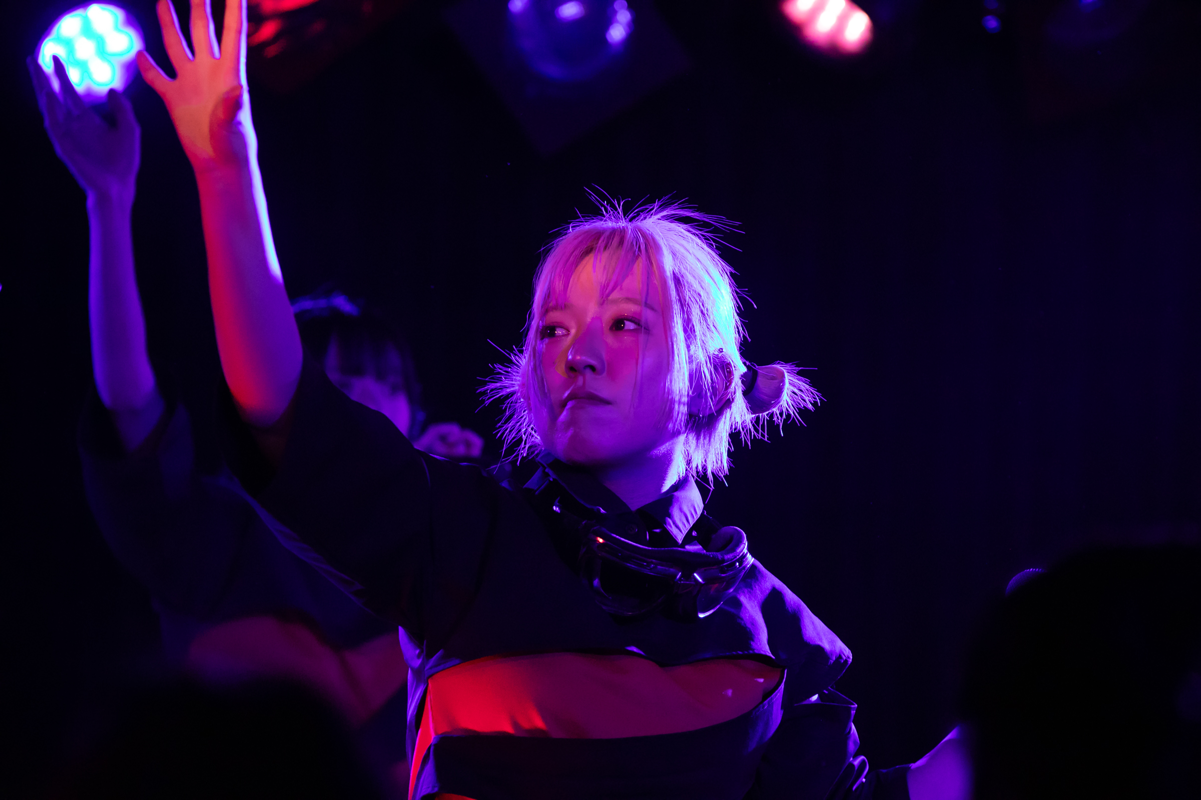 こむぎさんとあきさんにとっては約1週間ぶりのライブは、2曲目以降も「√G」「Storm Rider」と立て続けの激しい曲が続きましたが、それらを難なくパフォーマンスしていく二人からは、病み上がりの様子は一切見られません。