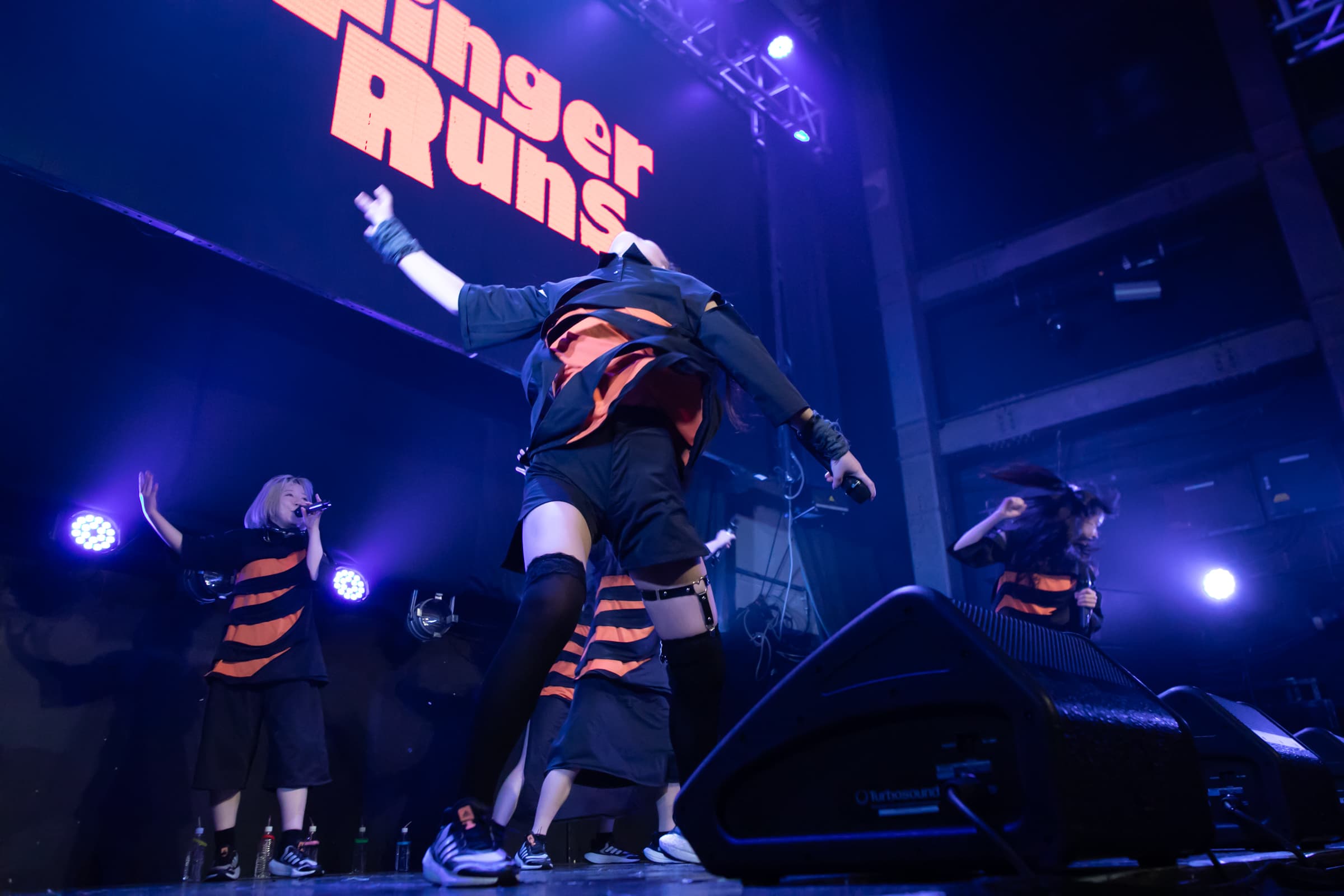 平日17時台という早め出番ながら会場にはFinger Runsファンの姿も多く見られ、「Storm Rider」の冒頭では「みんな早い時間からどうもありがとー!」と朝倉みずほさんがエールを送るとさらにフロアは活気づき、「絶頂VENUS」では2月に数々で繰り広げられてきた”セクシー対決”の最終決戦。今まで見たことがない(←と思われる)ほどの艶めかしいパフォーマンスを披露。