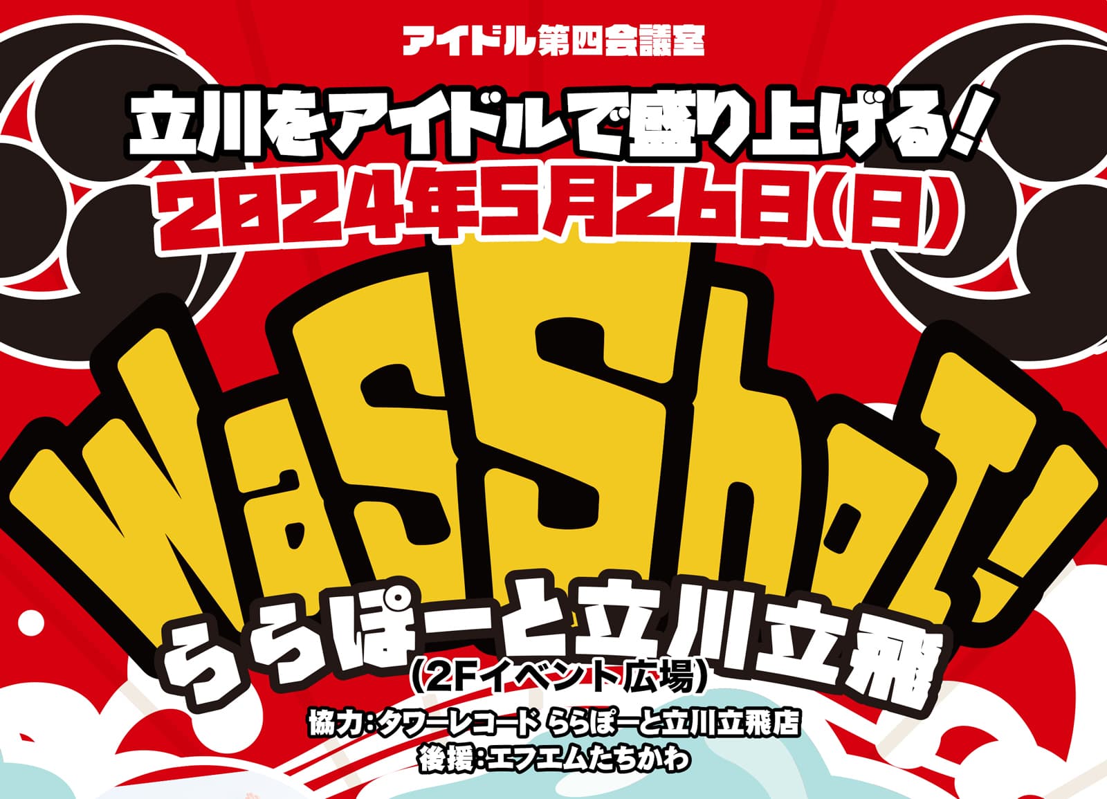 「立川をアイドルで盛り上げる!」をコンセプトに掲げ、「アイドル第四会議室」と縁のあるアイドルを招いて行われる対バンイベント「WASSHOI!(わっしょい)」。