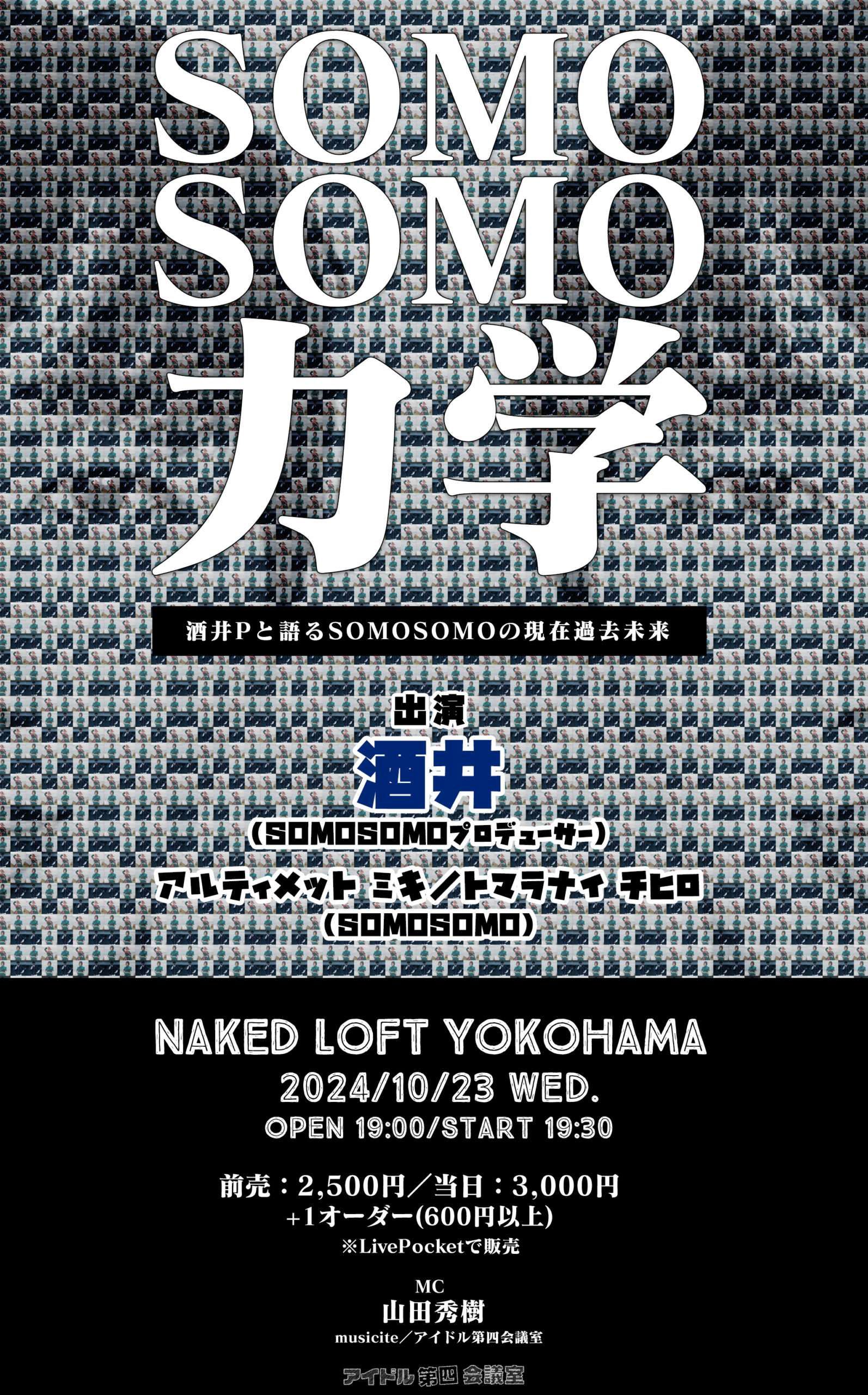 10月23日(水)にNaked Loft YokohamaでSOMOSOMOのプロデューサー酒井さんをお招きしてトークイベントをやることになりました。タイトルは「SOMOSOMO力学」。