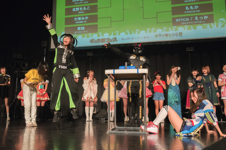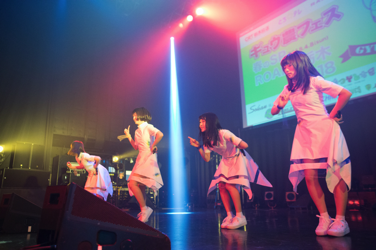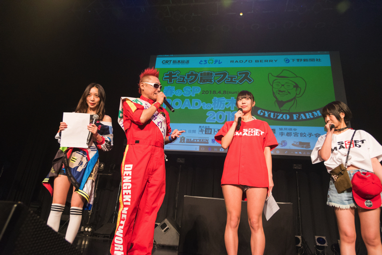 電撃ネットワークのギュウゾウが主宰するアイドルイベント「ギュウ農フェス」の新木場スタジオコースト公演「ギュウ農フェス春のSP ロード to 栃木2018<オクタゴンスピーカーの驚音 vs ライブアイドル!>」が2018年4月8日(日)に開催された。(photo by モリカワタイヘイ/山田秀樹)