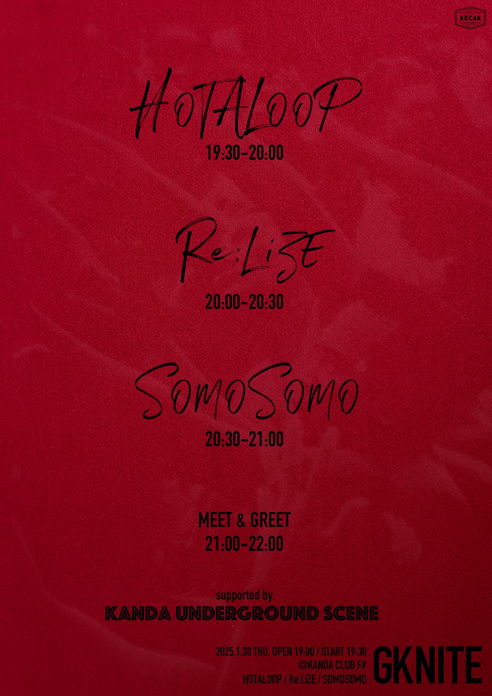 今回の「GK NITE」がそんなSOMOSOMOにとって相応しい舞台なのかかどうかは分かりませんが、2025年を走り始めた今のSOMOSOMOの姿を色々な界隈の色々な人たちに見届けてもらいたくてトリをお任せした次第です。