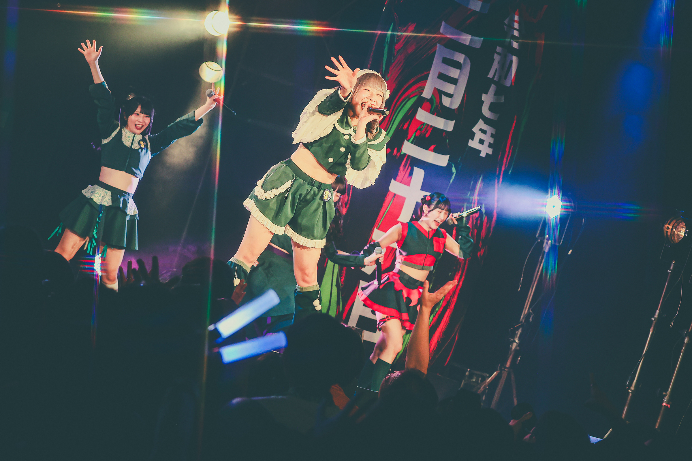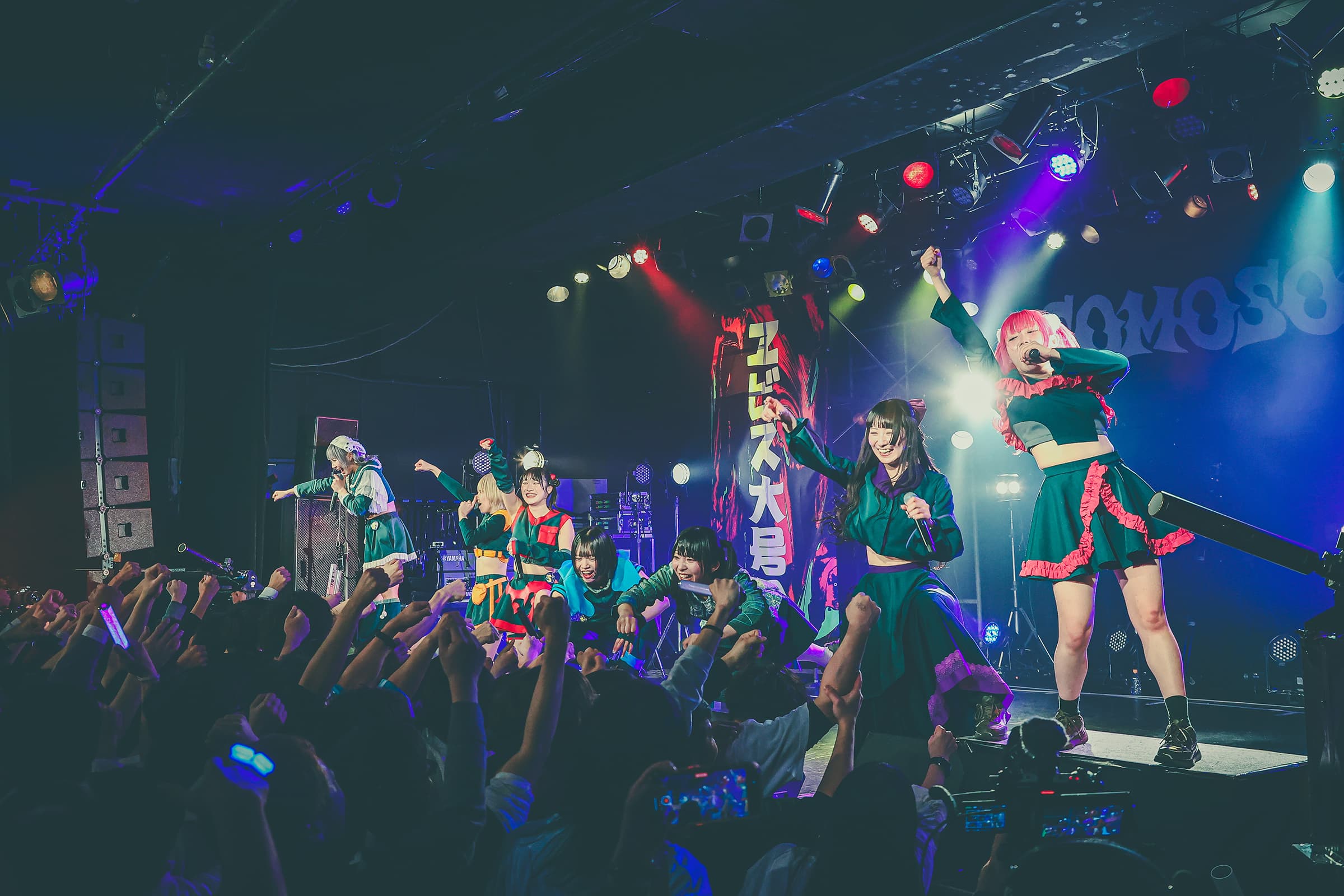 重厚なベースラインが鳴り響く中、この曲を作詞したアルティメット ミキが怪獣に扮して襲いかかる「大怪獣」は、SOMOSOMOの2025年のアイドルシーンを進撃していく姿を暗示しているような骨太でパワフルな一曲。そして初披露にも関わらず観客のコールも湧き上がる、SOMOSOMOの新キラーチューンの誕生の瞬間だった。
