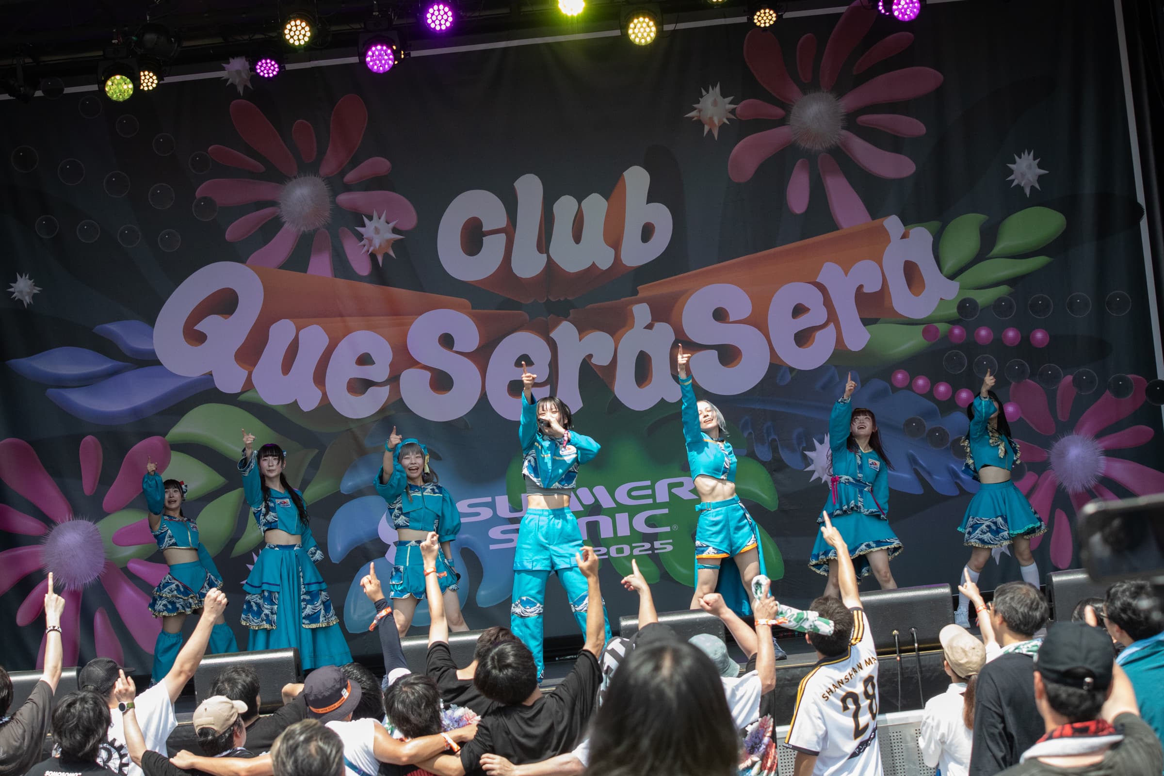 SOMOSOMOが出演したのは、陽気なラテンビートと多様なカルチャーが交差するサマソニ随一のパーティースポット「Club Que Será Será」。千葉マリンスタジアム横に設営されたこの屋外ステージは、サブエントランスからも近く、フードコートが隣接する中にある多くの来場者が往来する場所だ。