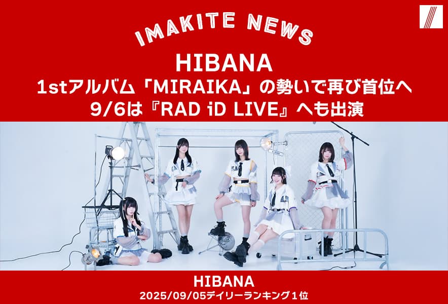 イマキテランキング(2025年9月5日付)で1位を獲得したのは HIBANA。獲得ポイントは 87.4ptでした。