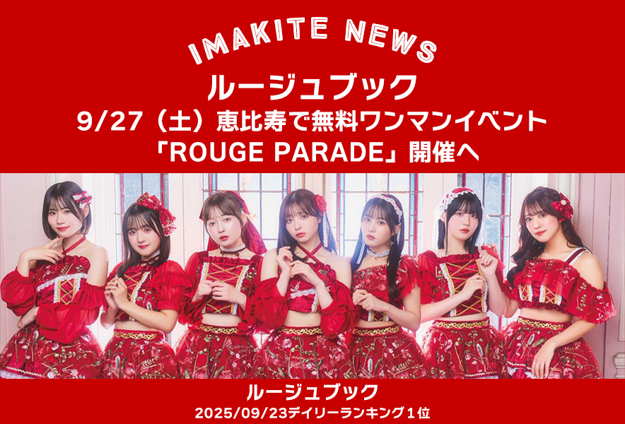 ルージュブックは9月27日(土)、恵比寿CreAtoにて無料イベント「ルージュブック presents ROUGE PARADE」を開催する。一般チケットは無料で、グループにとってより多くの観客と出会う機会となりそうだ。