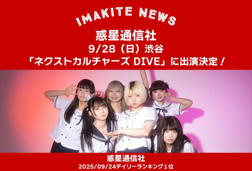 惑星通信社は、9月28日(日)に渋谷で開催される「ネクストカルチャーズ DIVE」に出演する。THE地下アイドルな惑星通信者のフリーダムな個性を新たなアイドルファンに広めていく絶好の機会となりそうだ。