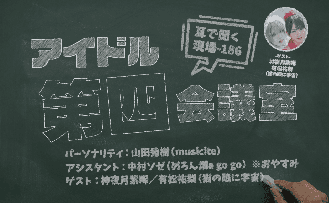 「アイドル第四会議室」vol.186は、神夜月紫晞さんと有松祐梨さん(猫の眼に宇宙)にお越しいただきます!
