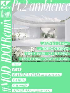 連動企画として3/31にはTOKIO TOKYOにて「RAY presents『#MOD_IDOLRemix』Pt.2 ambience」を開催。渋谷という地でエレクトロイベントの最前線をアイドルが牽引する。
