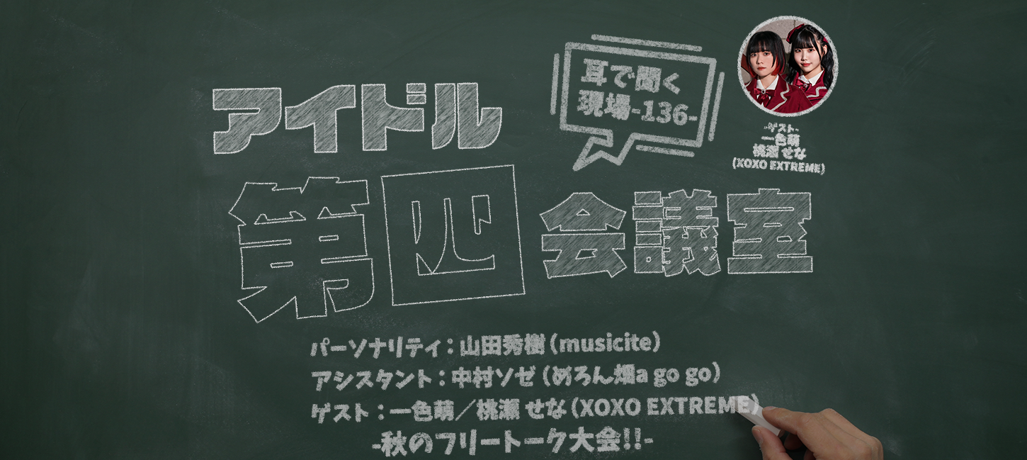 2024/11/05 0:16アイドル第四会議室アイドル第四会議室 vol.136 – ゲスト:一色萌/桃瀬 せな(XOXOEXTREME) –XOXO EXTREMEアイドル第四会議室めろん畑a go go一色萌