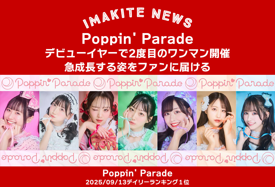 2025/09/13 6:00アイドル第四編集室【イマキテNews】Poppin’ Parade、デビューイヤーで2度目のワンマン開催 急成長する姿をファンに届けるPoppin' Paradeイマキテランキング